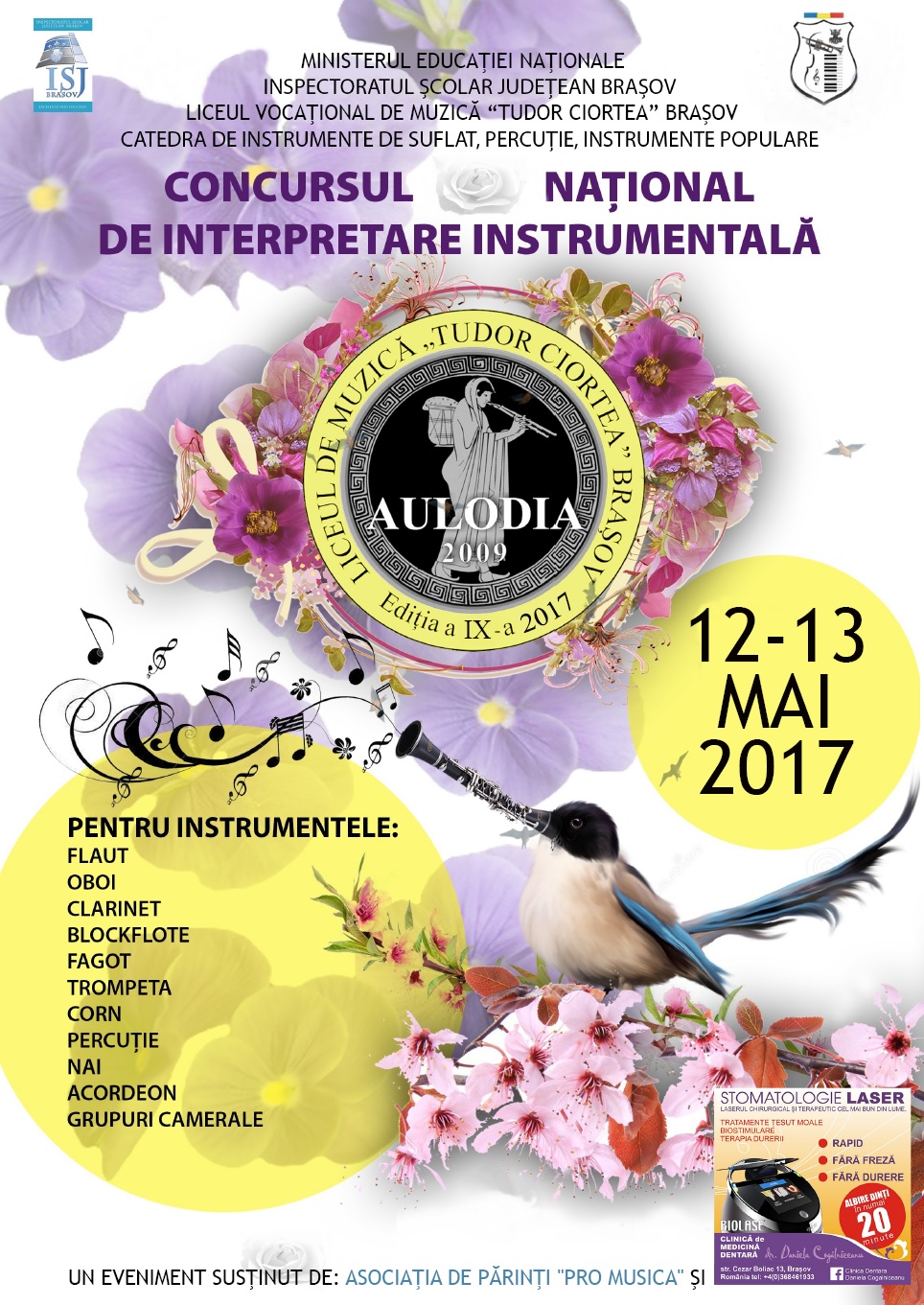Organizat în cadrul Liceului de Muzică "Tudor Ciortea" Braşov, instituţie de educaţie şi cultură de tradiţie, de peste şase decenii de activitate, Concursul Naţional de Interpretare "AULODIA", doreşte să reitereze în actualitate, efervescenţa muzicală a GRECIEI ANTICE care cultiva studiul instrumentului vremii: AULOS-ul.